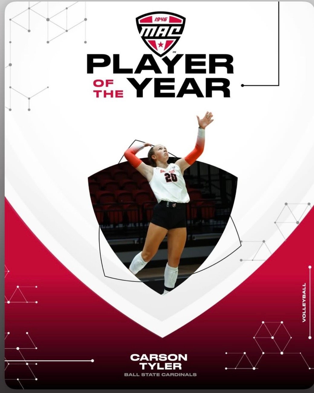 St. Mary’s High School is proud to recognize one of our own, Carson Tyler, for earning the title of 2025 Mid-American Conference (MAC) Player of the Year! Carson continues to shine as a standout for Ball State Women’s Volleyball, showcasing exceptional talent, leadership, and dedication on and off the court.